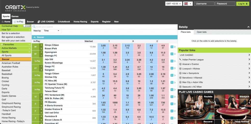 Orbit Exchange is the world's largest betting exchange, having launched in April 2017. It is powered by Betfair, which has a user base of over 4 million people. It has quickly risen to the top, outperforming numerous betting exchanges, including different other Betfair white-labeled exchanges. There are some similarities between Orbit Exchange and Betfair, such as equal odds and liquidity, keep in-play functions as well as cash-out options. The biggest difference between these two is the user interface of the website, which is far more organized and easier in OrbitX than in Betfair. Orbit Exchange also does not have the infamous Premium Charge.