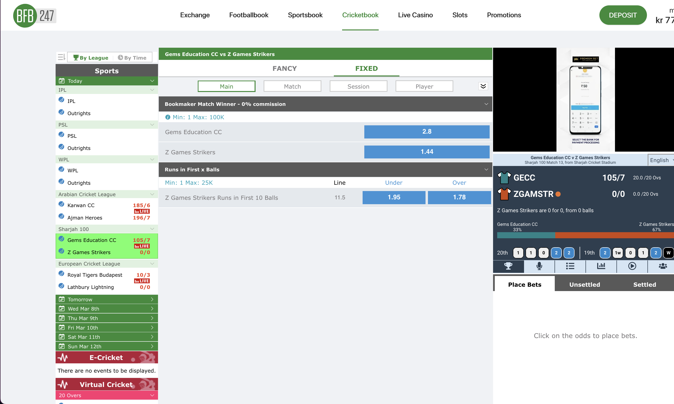 Cricket betting is becoming increasingly popular around the world. Growing popularity is seen especially in the UK, and also in Asian countries like India. Orbit has created its own proprietary cricketbook, where betting on cricket games, all over the world is possible, at the best price available. Some markets are available at 0% commission. Indian bettors are able to bet with the highest limits and best odds using the Cricketbook.