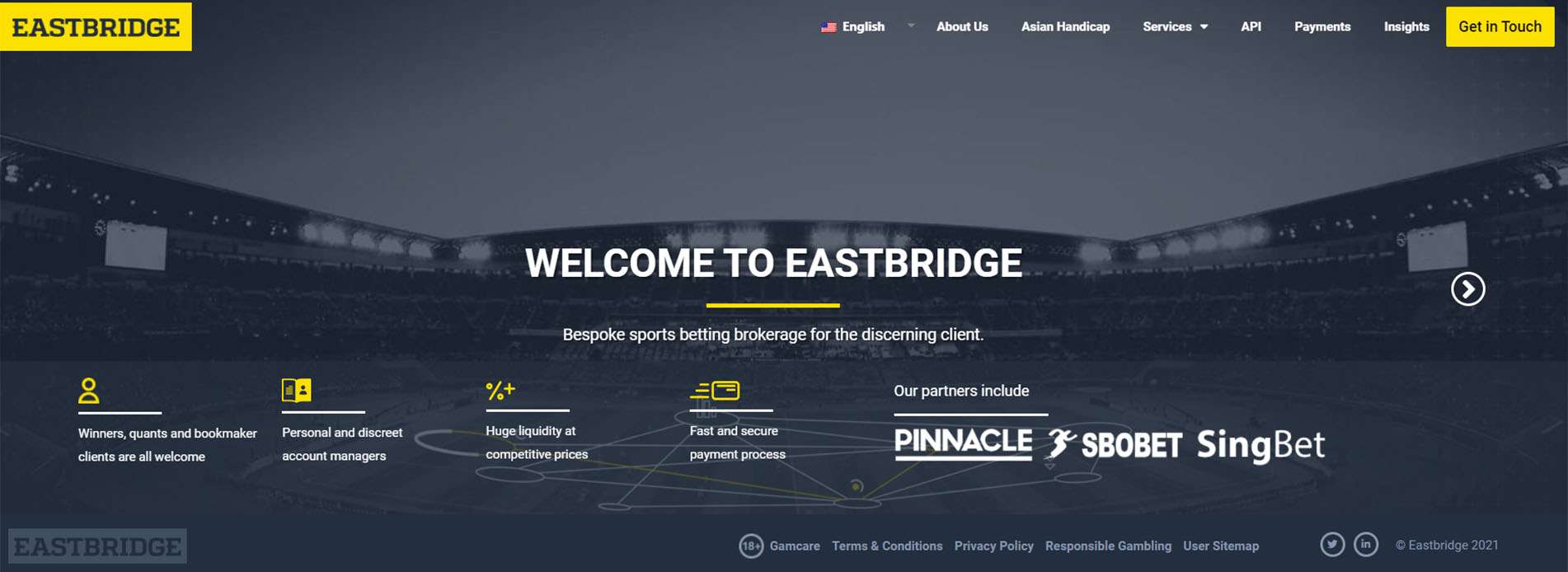Eastbridge is a reputable sports betting agency that serves hundreds of professional bettors, financial analysts, syndicates, and bookies worldwide. It was licensed by the Curacao Gaming Authority in 2014 and is managed by the European Division of OLE Group, which was started as a sports agent for several of the pioneering Asian sportsbooks in South East Asia in 2006. As Asian sportsbooks grew in popularity and significance in the global gambling industry, the OLE Group consolidated its position in the market by expanding its extensive coverage network to include all major and minor sportsbooks in Asia.Eastbridge goes an extra mile then what is expected of a typical broker. It claims that the needs and satisfaction of the customers are its first priority. Apart from that, it doesn't charge betting fees and doesn't cap the customers' bets. It offers a variety of services, like free and easy Skype betting, exclusive accumulator software for bookmaker prices, and the industry's fastest sports betting API. It not only gives its clients unlimited access to the top Asian handicap markets, but also has the lowest margins, allowing it to offer competitive odds and betting limits and make the most of its wagers. What's the main difference between Eastbridge and the others? It's really quite simple: winners are welcomed and embraced. Eastbridge gives its users access to high-liquidity Asian Handicap betting markets at cheap pricing, aimed at bettors of all levels, from recreational to professional. It's just a service that helps everyone who wants better prices and returns and unfettered access. Football, basketball, and baseball are their primary sports.Eastbridge lets its users access the Asian Handicap betting markets in a lot of ways. Firstly, it offers a Skype-based sports betting service. Secondly, it allows users to place their bets on two different betting platforms – VOdds and Odds4Sports. Thirdly, it provides direct accounts for three leading sportsbook – Pinnacle, SingBet, and SBOBet. Finally, it enables quantitative analysts to access the sports betting API either through its own proprietary software (UNITY) or by integrating customers’ own platforms.Direct Sportsbook Accounts