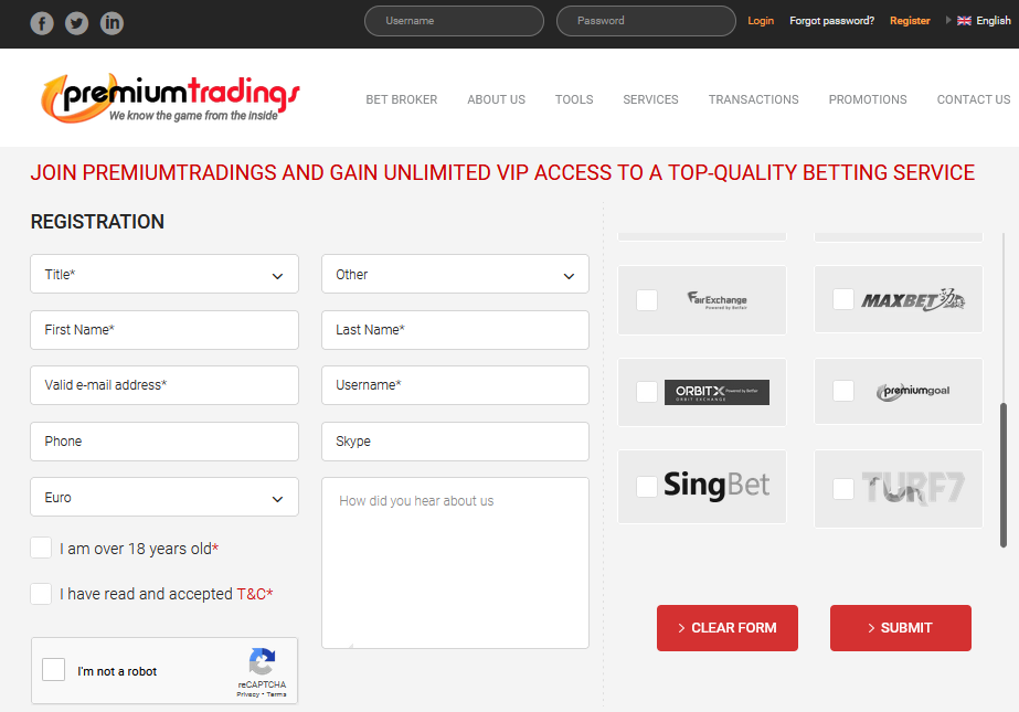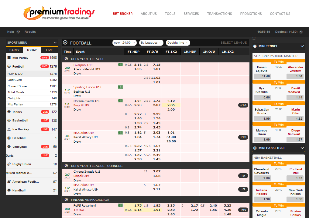 PremiumTradings is one of the oldest and most trustworthy sports betting brokers in the world, established in 2011 in Curacao, Japan. It is owned and operated by Sprint Technologies N.V. This brokerage service is licensed by the gaming commission of the Central Government of the Netherlands Antilles with license number 8048/JAZ2015-033. Their primary purpose is to establish a platform where syndicates and punters may open high-limit accounts and enjoy the highest odds with some of the major bookmakers in the market, which are inaccessible to many people due to various restrictions.PremiumTradings can provide bettors with accounts at some of the most famous Asian bookmakers on the market, such as Maxbet, SingBet, 18bet Asia, BetISN, BabiBET, Pinnacle, 1bet, and the casino bookmaker Slot10 as well as some betting exchanges: CITIbet, Turf7, and FairExchange.Bettors will have access to different betting platforms and tools through PremiumTradings under a single profile. Premium bet broker is a tool for placing bets with the maximum limits and best odds available on the market. Another significant tool of PremiumTradings is Premium Goal, which allows bettors to place pre-match and live bets across many sports with all available bookmakers at once. An uncommon tool which makes PremiumTradings different from its competitors is Premium pool. This tool allows you to connect with your friends and use a shared account. Every user will have a specific portion of the account and they will share the profit in the same way. Furthermore, the beneficial option of Skype betting is also available on PremiumTradings. It has substantially greater limits and is ideal for premium players or larger betting parties. The user will contact PremiumTradings traders over Skype and write the desired bet, minimum odds, and amount. The trader will then try to place the bet as quickly as possible. The bet will be confirmed immediately after the user places it. It is typically a solution for users with above-average betting requirements.