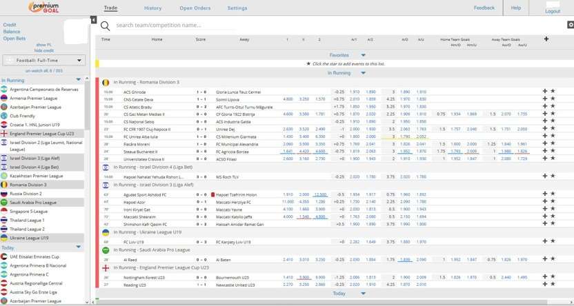 The Premium Goal feature allows bettors to compare all available odds in real time using a single account. It will provide customers with market averages in an easy-to-understand format, all based on their preferences. The tool can be used for both pre-match and live games with the following sports: Soccer (full, half and extra-time, corners and half-time corners), Basketball, Tennis, American football, Baseball, Ice Hockey, Cricket, Rugby union, Boxing and MMA. Premium Goal allows users to bet on the following markets: Asian handicap, Over/Under, and Standard European 1x2 odds. It also enables bettors to experience live betting as well as betting on scheduled matches. All the live events are dispersed among the available bookmakers. So, if bettors can’t find a specific game in a bookmaker, it will surely be found in another bookmaker.The interface is simple to understand for all kinds of users. There is a ‘Search’ bar on top of the interface to find any specific team or competition. The user’s credit, balance, and open bets are displayed in the top left corner, and a dropdown menu with the list of sports is right beneath it. Afterwards, there is a list of ‘In Running’ leagues for the selected sports, where the preferred leagues can be selected and the events and live bets are displayed in the center in details. Users can mark the events as favorites by clicking on the star mark, and they will be shown in the ‘Favorites’ list.Premium Pool