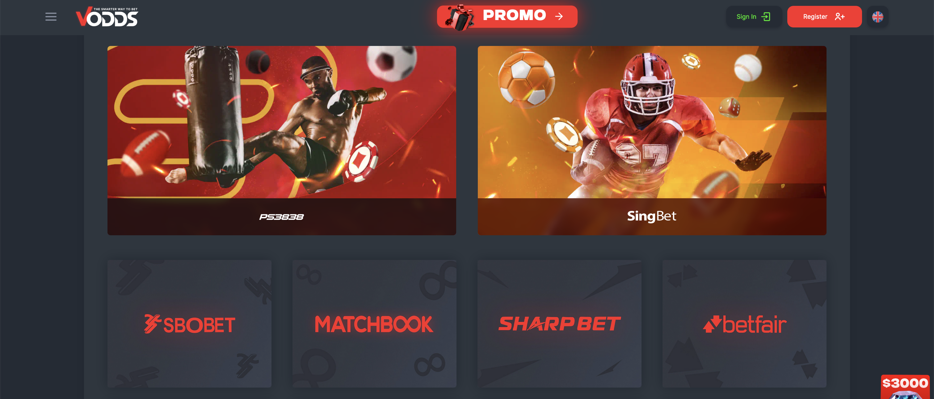 VOdds allows its users to access the following bookmakers and exchanges mentioned below.- Pinnacle: Pinnacle, also known as PS3838, was founded in 1998 and has since expanded to be amongst the world's most prominent sports betting businesses. It is licensed by the Netherlands Antilles Gaming Commission and is located on the island of Curacao. It provides outstanding odds due to its small margin, which is vital for all expert punters. It used to provide online poker alongside sports betting in 2008, but due to a change in European gambling regulations, it discontinued it in 2011. It departed the United States on January 11, 2007, when the Unlawful Internet Gambling Enforcement Act (UIGEA) was passed. It was one of the first global bookies to offer eSports betting in 2010, and it was the first to offer drone racing odds in 2016. It does not offer any sign-up bonuses to new users, but it does offer a good betting line.